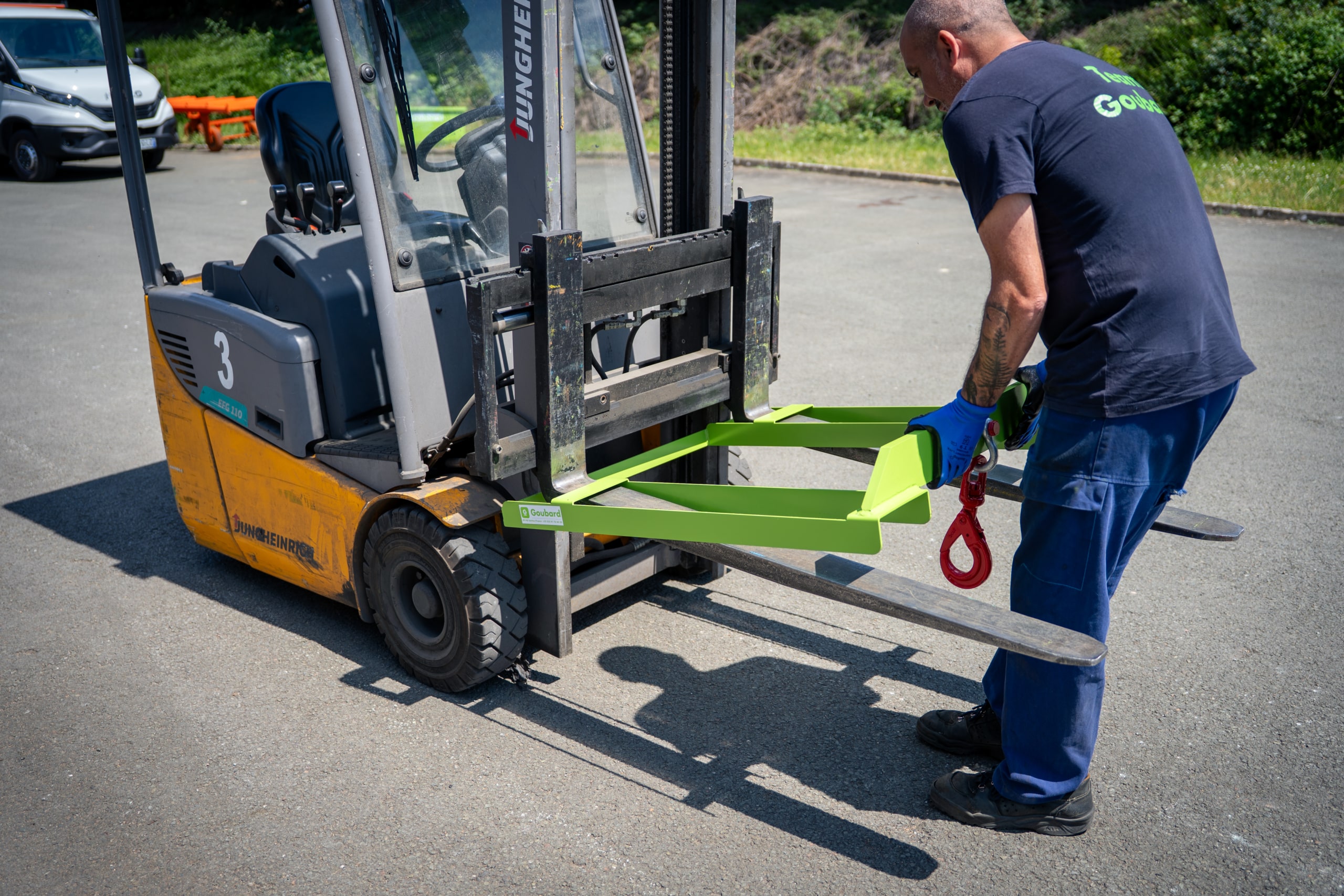 Transforma rápidamente su carretilla en aparato de elevación. Montaje rápido sobre horquillas. Homologado por un organismo de control. 2 modelos.